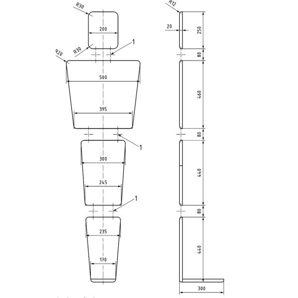 For the dummy shown in Figure 1, all dimensions shall be subject to a ±2 mm tolerance. All edges and corners in contact with the furniture shall have a 12 mm radius.