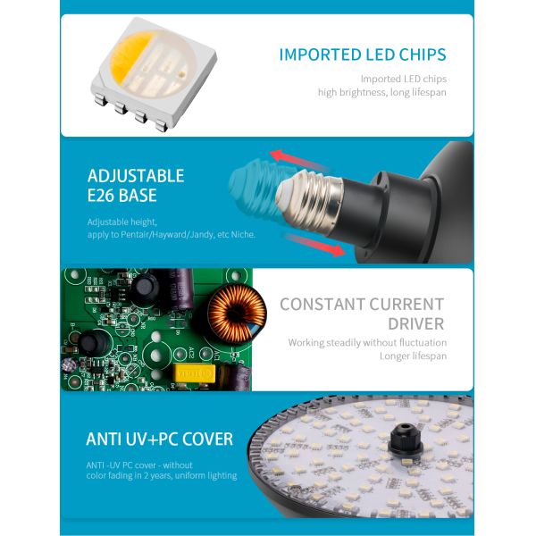 5. Pool light led Can replace traditional halogen lamps, fully matching the conventional PAR56 lamps in the market.