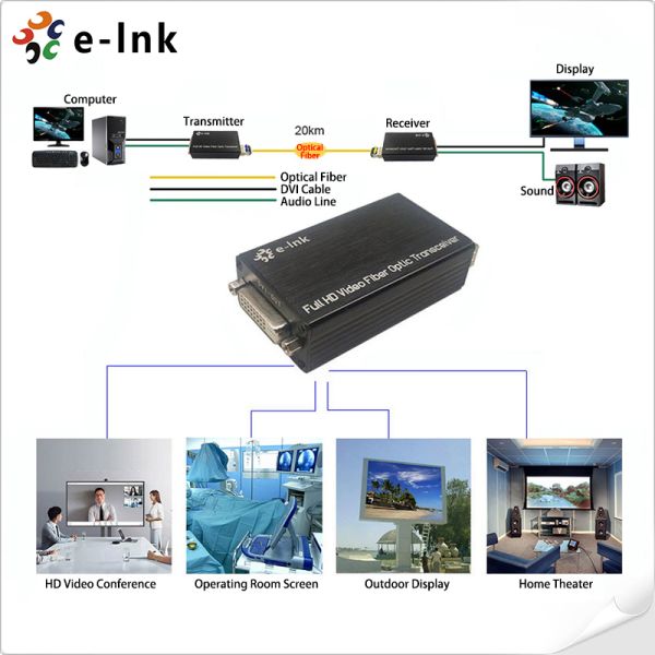 ► Transmits DVI video signals and audio up to 20km over a single fiber optic cable;