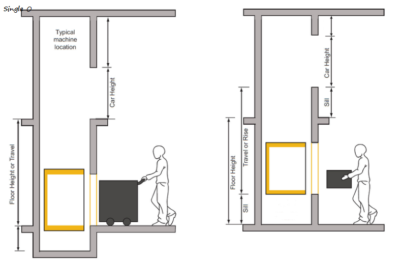 dumbwaiter. Only one wall is required to support the smaller ones.