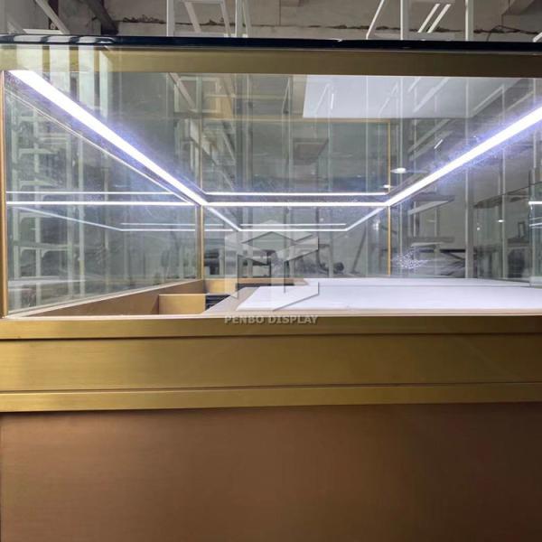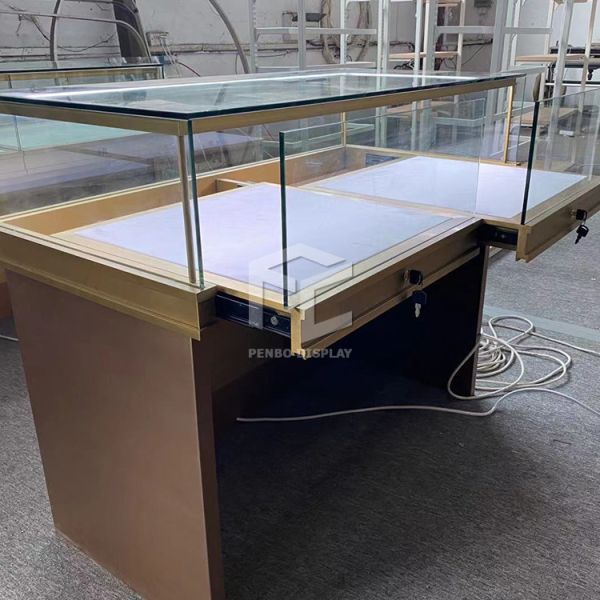 Jewelry display showcase is made with toughened glass material, so that product storage is more safe and assured.