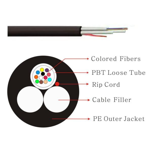 Non-Armored Uni-Tube optical cable with fibers placed in loose buffer tube.The cable core is protected with jelly to prevent water intrusion and migration, and coverwith a black polyethylene out jacket. Two embedded FRP or metallic wire provide desire tension.