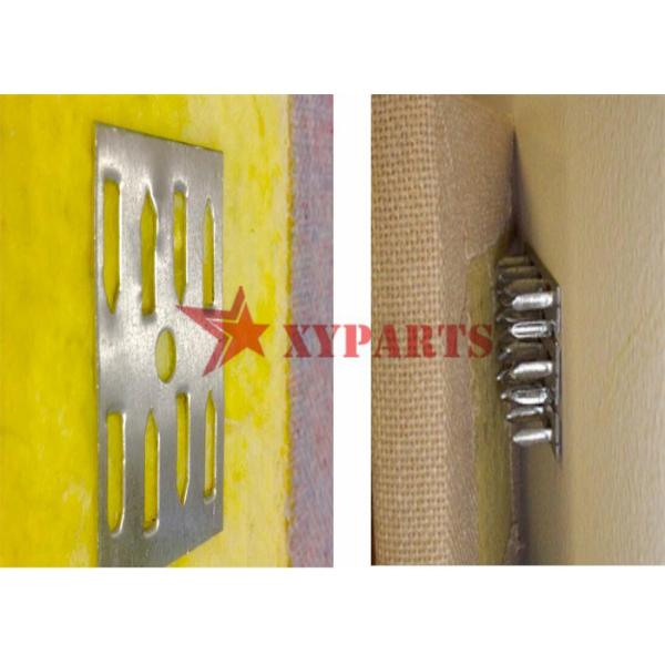 Perforated Impaling Clips is stamped by metal plated, which simplify the installation of rigid fiberglass acoustic panels. Use screws to fasten the impaling clip to the surface, apply PolyFoam Adhesive on the clip and acoustic panel then press the fiberglass panel to the clip.