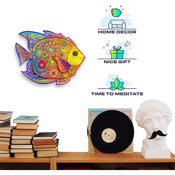 Wooden Jigsaw Puzzle, Best Gift for Adults and Kids, Unique Shape Jigsaw Pieces Shining Fish
