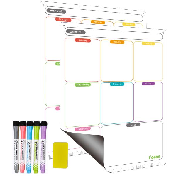 Magnetic Dry Erase Weekly Fridge Calendar x2pcs, 16.9 x 13inch, Extra Thick Magnetic Weekly Calendar Notepad