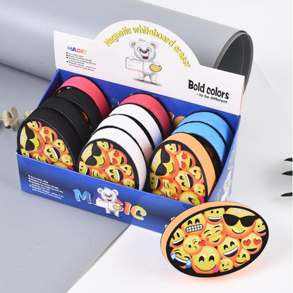 The emoji whiteboard eraser is the perfect classroom product and the ideal choice for the office dry erase board.
