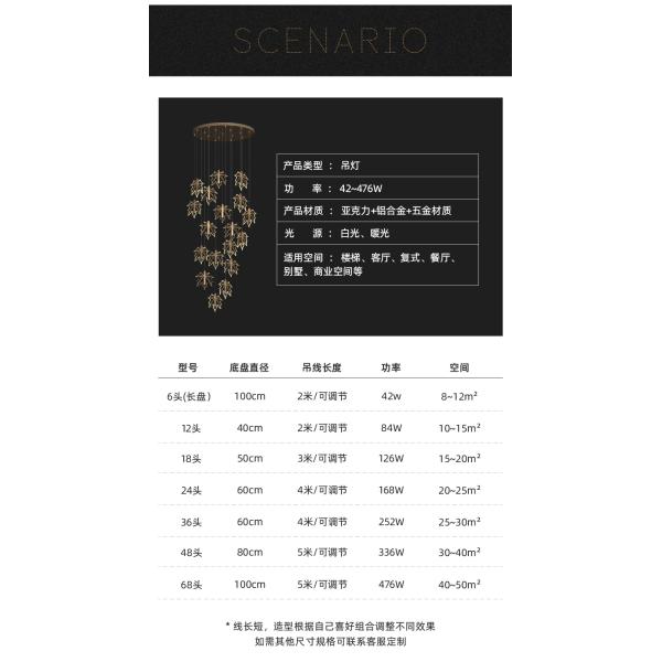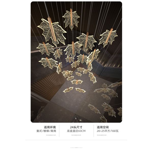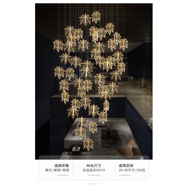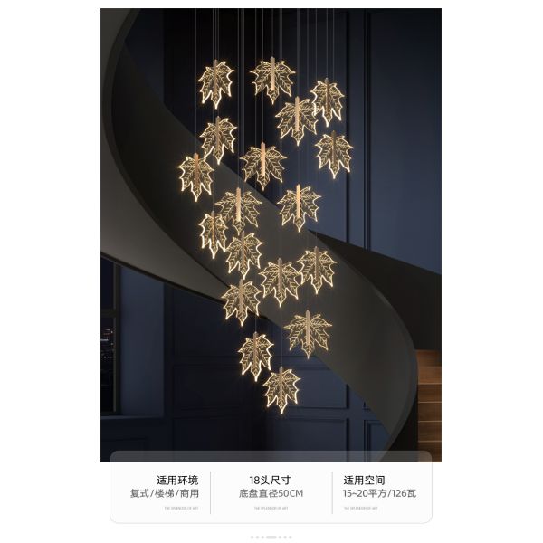 Modern staircase chandelier hotel lobby villa spiral leaf