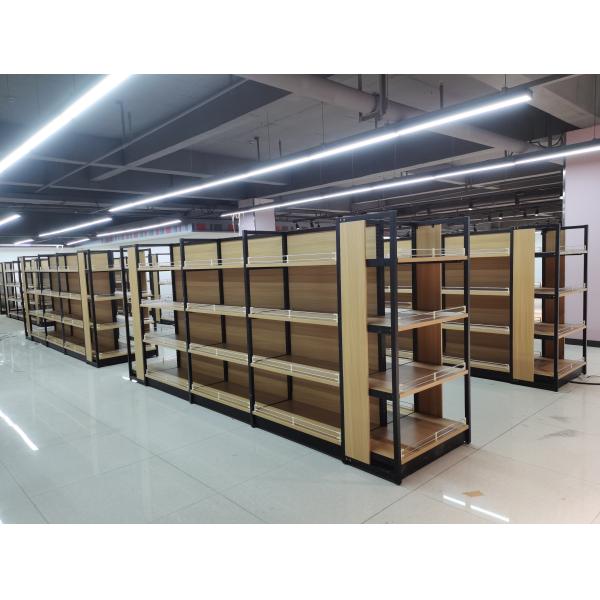 Matt black supermarket shelf wooden color racks gondola shelving