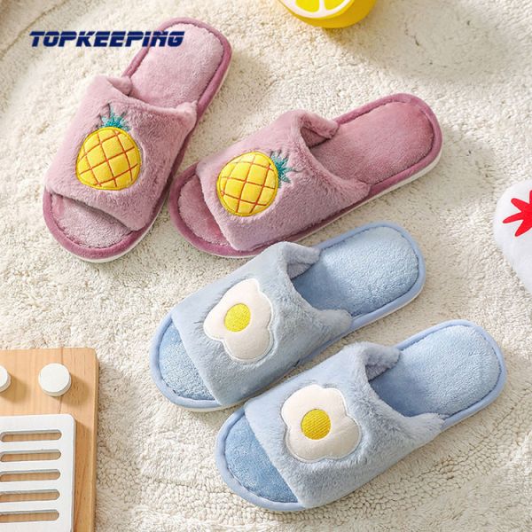 2D0064 Wholesale Multi Color Woman Outdoor Furry Fur Fluffy Rubber Sole Slipper
