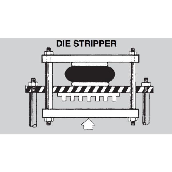 Unlike the bridge stripper, the air spring stripper flattens the metal before the punch contacts. This prevents the material from sticking between the cutting punches during entry and exit. In addition, when the punch is withdrawn from the metal and the lower mold, the stripper (still spring loaded) keeps the metal down flush with the lower mold part, so that the cutting punch is completely withdrawn from the metal plate or part in the spring Before the stripper is released.