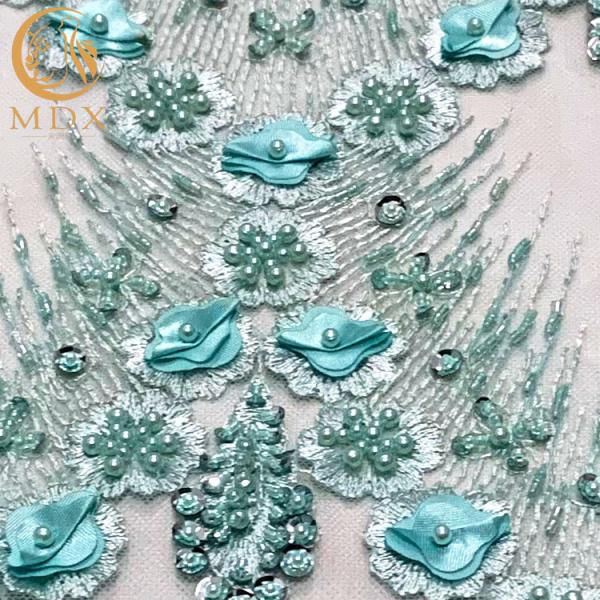 Elegant Design Beaded Decoration Handmade Net Embroidery 3D Flowers Lace Fabric