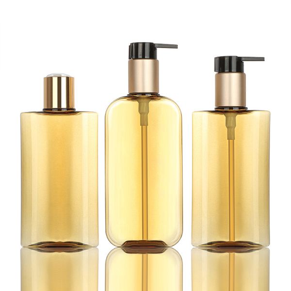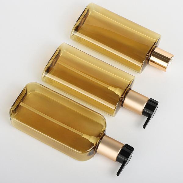 Top Sell 200ml 250ml Clear Amber Square Body Lotion Plastic Bottle With Gold Pump Disc Cap