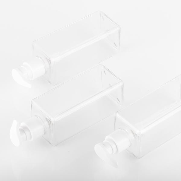 300 Ml Luxury Empty Cosmetic Packaging Toner Transparent Square Shampoo And Conditioner Container