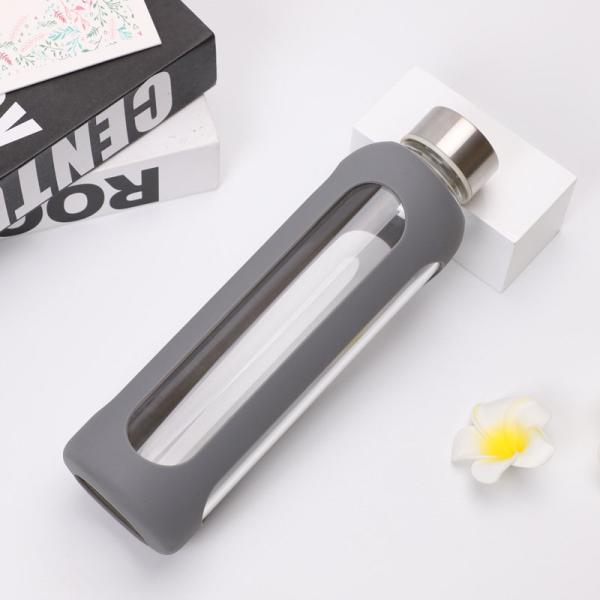 This bottle is made of high borosilicate glass, BPA FREE plastic lid, and a silicone bottle sleeve. Glass body is very easy to clean, it won't retain odors or absorb colors. The lid comes with a handle, convenient to carry when going outdoor. The bottle sleeve makes the simple glass bottle to be unique and anti-slip.