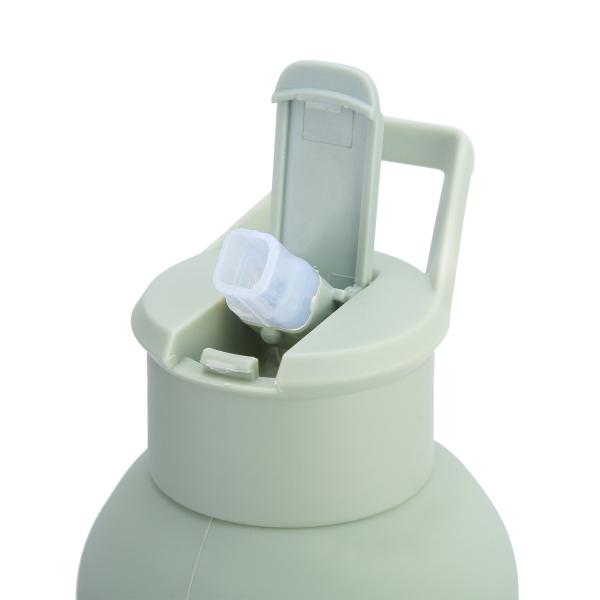 It comes with one unique novel lid which top spout (with silicon safe like a baby nipple, safe to sip or bite) connects with a removable straw to the bottom to get liquid easily, even the last drop. A wide-mouth water container allows ice, fruits to get in it simply. and Easy to open, remove, to clean.