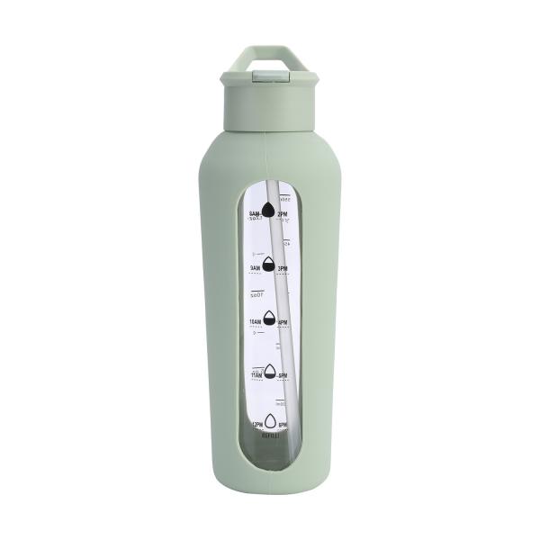 Outdoor Sport Glass Water Bottles With Silicone Cover And Straw