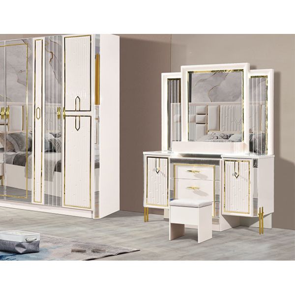 | Size: | Bed size::1800*2000mm Side table size::600*400*500mm Dress table size::1400*500mm Wardrobe size::2400*2200mm Stool size::460*340*400mm |