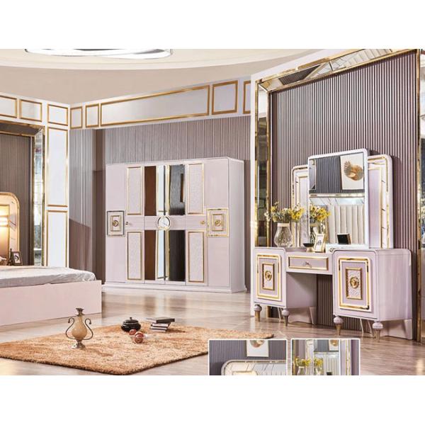 | Size: | Bed size 2000*1800*1550mm Side table size 600*400*500mm Dress table size 1800*400*1800mm Wardrobe size 2400*600*2200mm Stool size460*340*400mm |