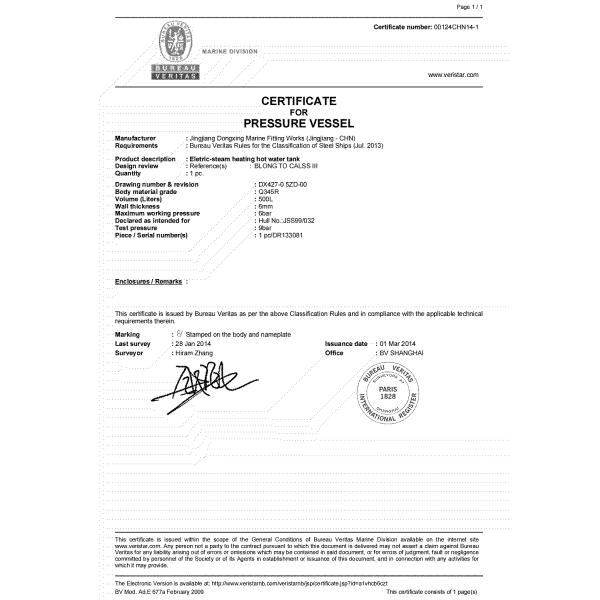 Jingjiang Dongxing Marine Equipment Factory-Marine hot water tank,