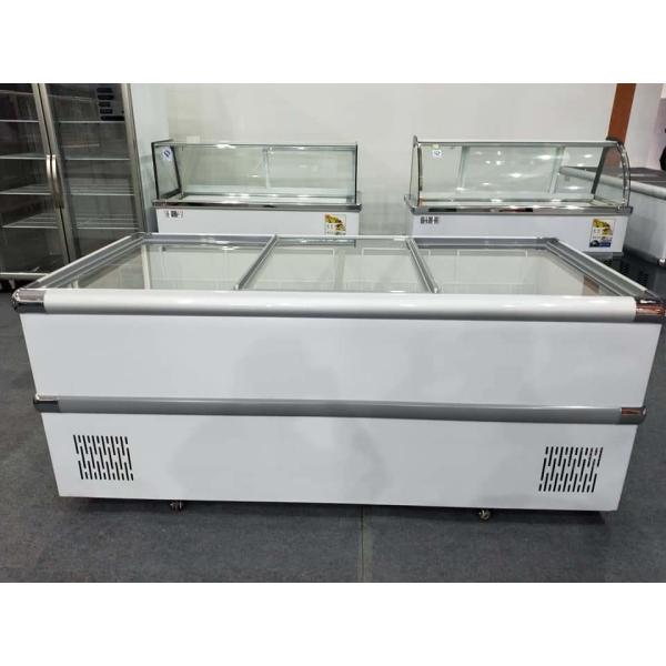 Stainless steel material made of glass sliding door refrigerated preservation island cabinet
