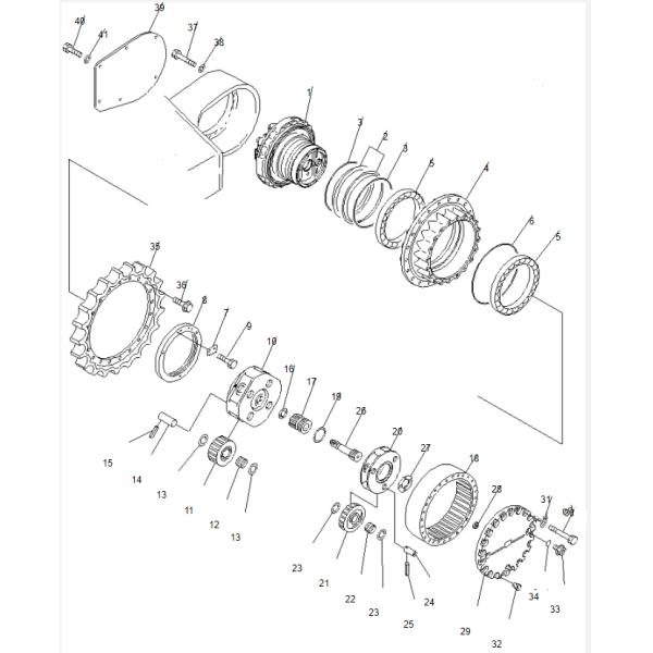 Swing Device Ass'y, Swing Gearbox, Travel Gearbox, Gears,