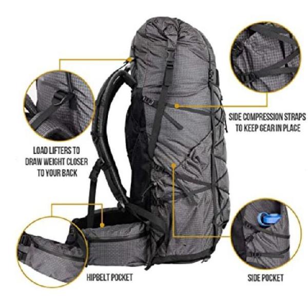 ultralight and durable outdoor backpack, lighter than most 50-60L