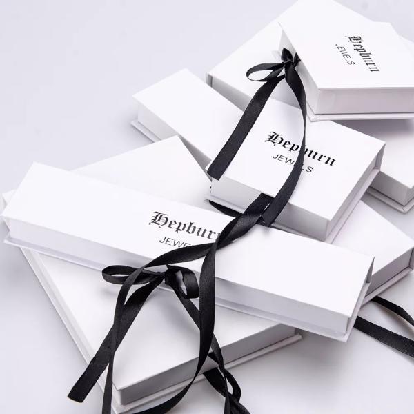 Luxury custom logo black and white small cardboard necklace bracelet jewelry packaging gift box set with ribbon