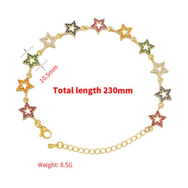 18k Gold Chain Colorful Rhinestone Heart Star Shaped Bracelet For Women