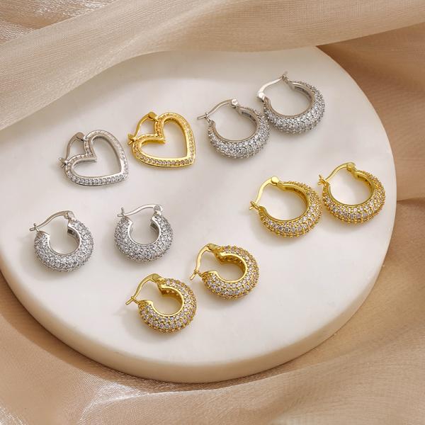 Sterling Silver Hoop Earrings Micro Pave Zircon Jewelry Fashion Earrings For Women