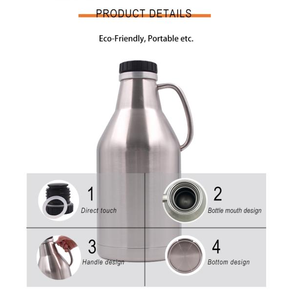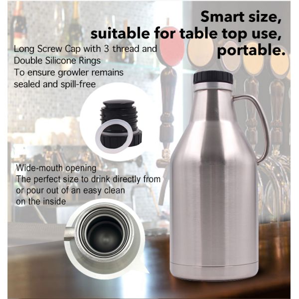 64oz stainless steel vacuum insulated beer growler with BPA free