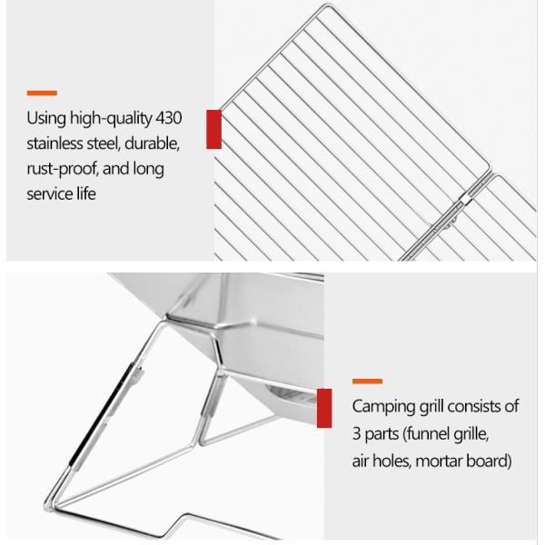 3. Easy to Use: The camping grill contains 3 parts. A funnel-shaped