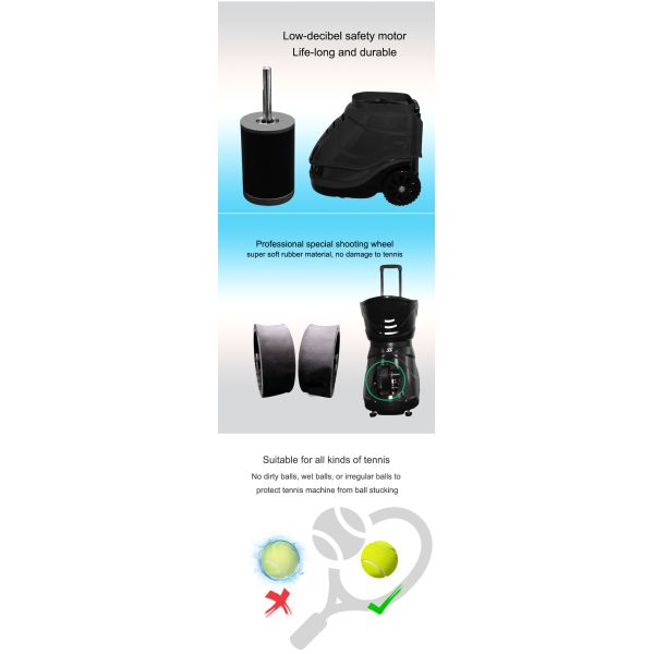 SIBOASI tennis ball machine uses counter rotating wheels to propel the balls. It is the most effective method of ball propulsion allowing the machine to remain silent and effectively produce topspin and slice. The wheels are black to help disguise their location inside the machine, helping to make each shot almost unpredictable.To make your training more effective, unpredictability of shot is what you shouldn't ignore.