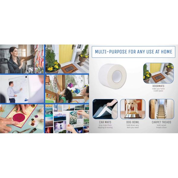 1. Secure carpets, stair treads, rugs, mats or tile on any surface rough or smooth. Surfaces include hardwood floors, marble, tile, stone, laminate, parquet, carpet to carpet.