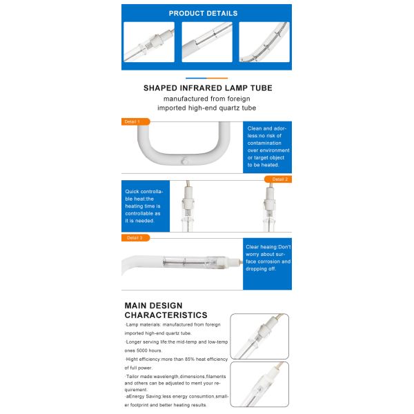 380V 1505W Short Wave Single Tube White Reflector U Shape Infared Heating Lamp