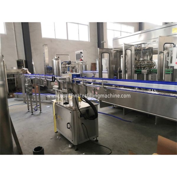 The machine combines four parts together, disinfection water rinsing, pure water rinsing, filling and capping.