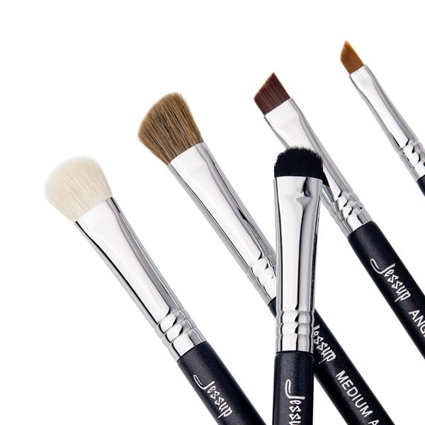 Jessup 5pcs Eye Black/Silver Makeup Brushes Set Angled Line Shading Eye Short Shader Brush T302