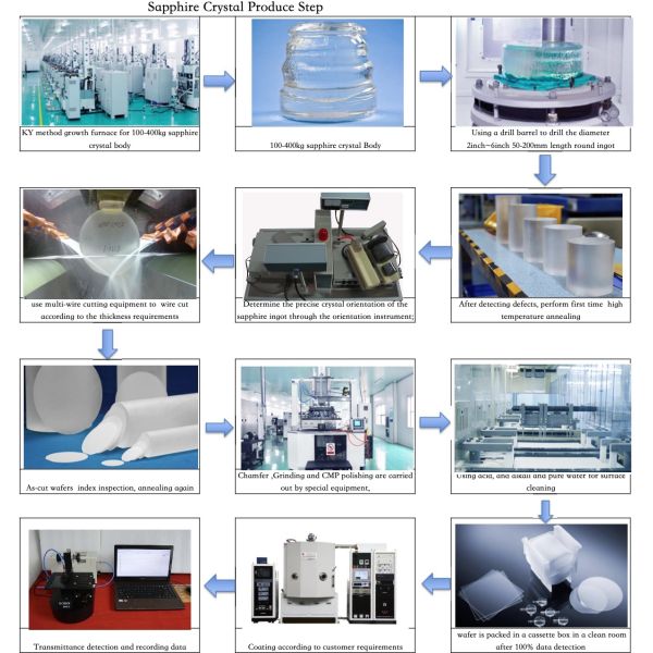 Sapphire crystal body--->get rough ingot in customized axis--->cut tail& top off---->