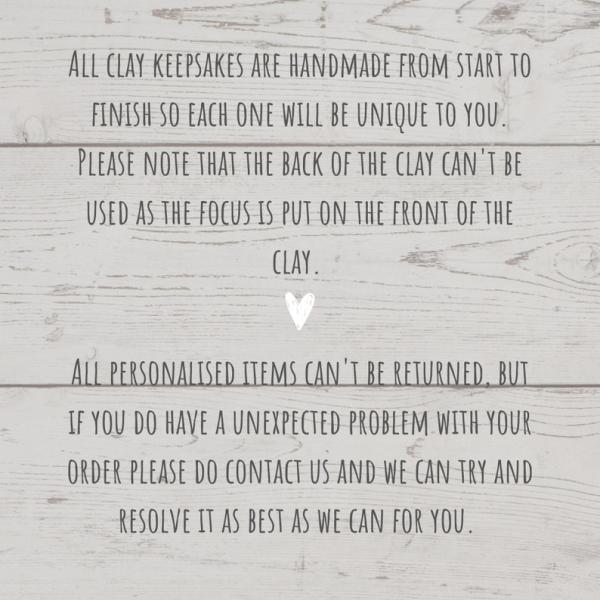 All my clay keepsakes are handmade and custom so each clay item