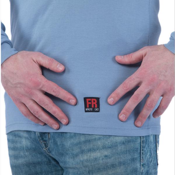 This flame resistant Henley/T Shirt widly used for mining industry, welding industry and oil and gas industry. the fabric is certificated by UL NFPA2112, its 100% cotton flame retardant 7oz knitted interlock weaving style, also we can do a lighter one 5.5oz single jersey fabric, all accessories including the threads are fire proof too.