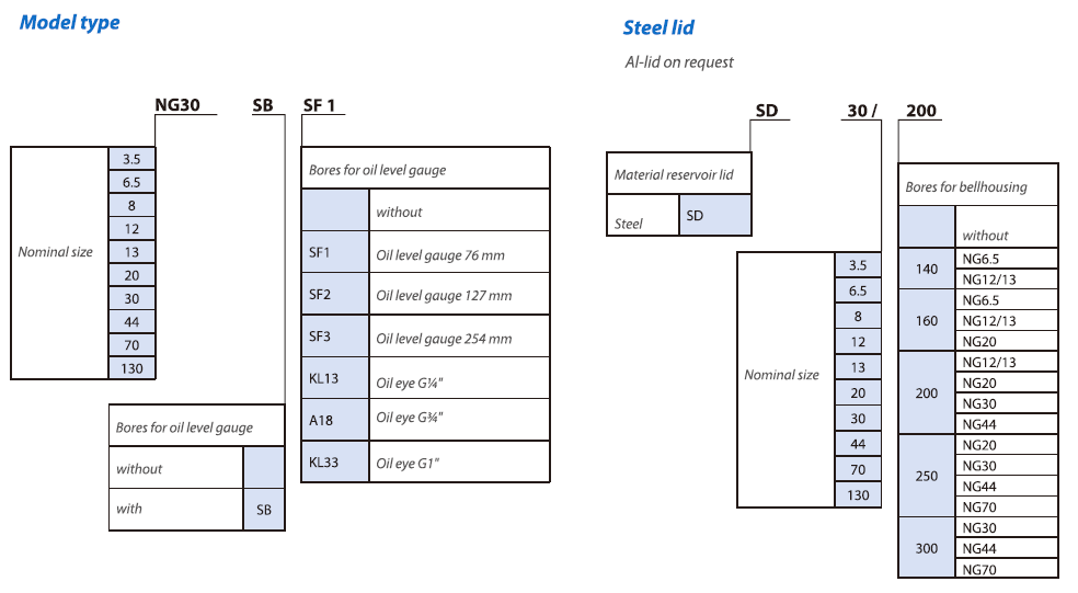 with NG30, NG44, NG70 fuel tanks, which are suitable for various