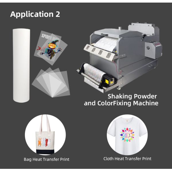 The water-based colored ink and white ink are directly printed on the printing film through the printer to form various beautiful patterns, which are dried by sprinkling hot melt adhesive powder and then transferred to the ironing object.