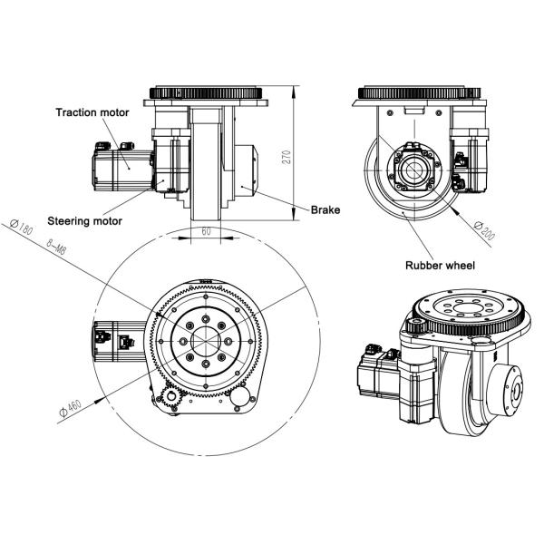 The steering wheel is an integrated mechanical structure integrating drive motor, steering motor, planetary reducer, etc. It integrates product, walking, traction and steering functions, and can load and tow heavier goods. It can quickly deploy AGVs, mobile robots, etc. Perfectly meet the application requirements of AGV.