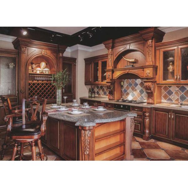 2022 NewTrend Classical Antique Solid Wood Kitchen Cabinets With Island Bar