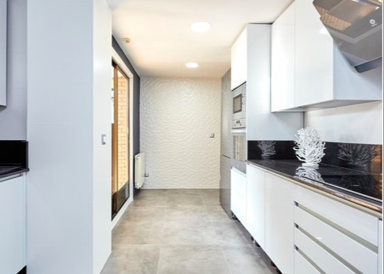 Laminlate Modern Modular Cabinets With High Gloss Finished And Quartz Top
