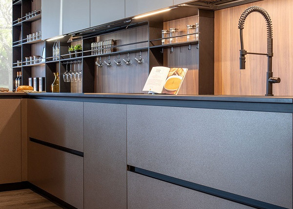 stainless steel, aluminium.The cabinet door materials: melamine, uv, pvc, lacquer