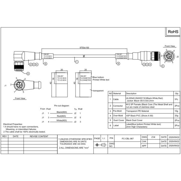 | Connector | M12 5P Female or other equivalent. Injection waterproof,speicial connector as required |