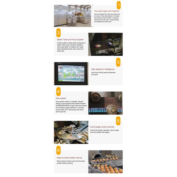 Automatic ice cream cone production line is fully automatic line which can make crispy waffle cones and