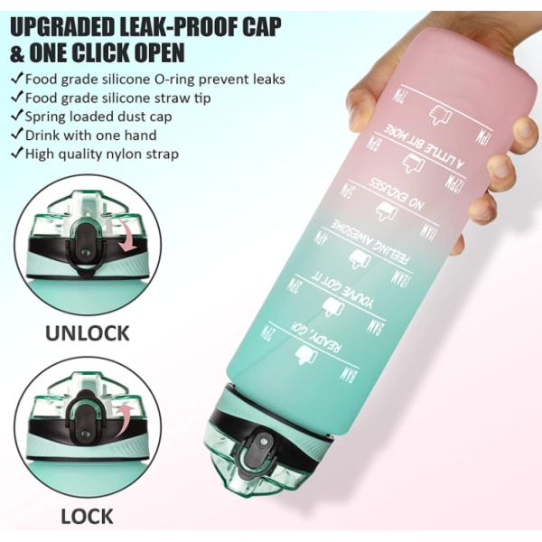 4: Leak-Proof: The top of 1L water bottle is designed with a food