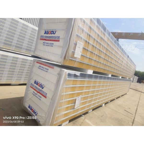BAODU's Polyurethane Sandwich Panel is the perfect solution for various applications. With its CE certification, it guarantees quality and reliability. The panel is made with a minimum order quantity of discussible and a price that is reasonable. It is delivered in 15 days, and payment terms include L/C, D/A, D/P, T/T, Western Union, and MoneyGram. The panel is supplied in 5000 square meters per day and has a modern design. It has a width of 1000mm and is soundproof. It also has a steel thickness of 0.4mm-0.8mm and a customized surface. In general, for steel structure, steel frame packing is used to keep goods from being broken, while for sandwich panel and color steel sheet, plastic packing is used. Special packing is available upon request.