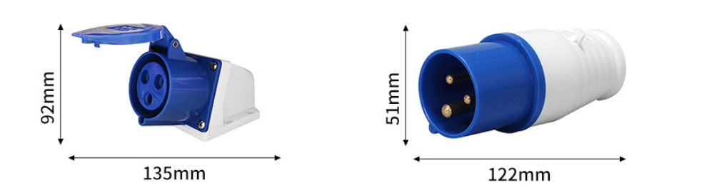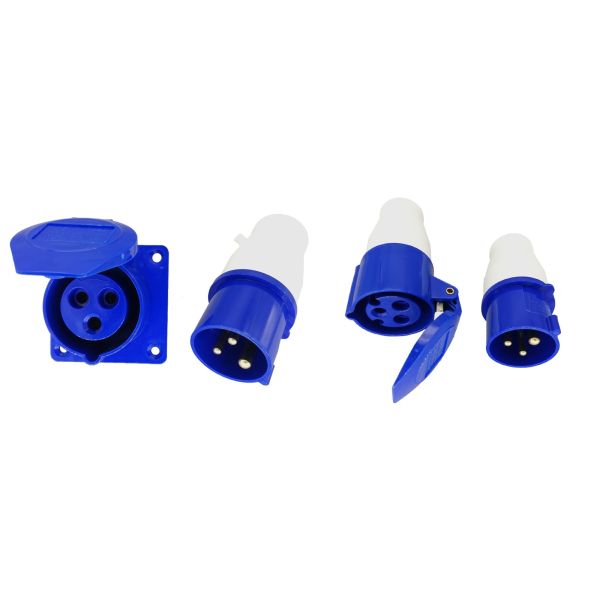 220~250V 16A Industrial Connector Male And Female Single Phase 2P+E Blue Color Wall Mounted Type